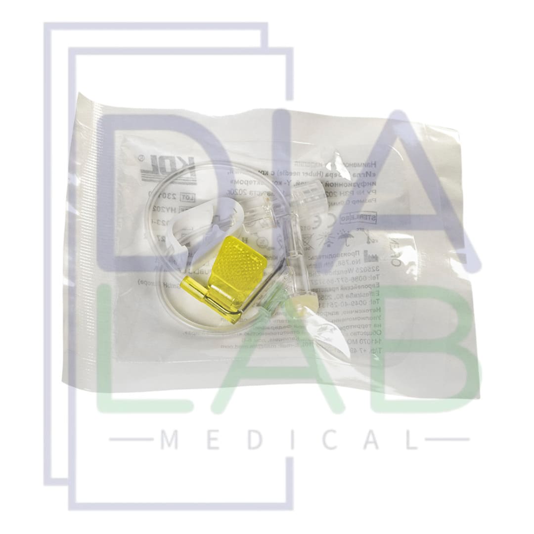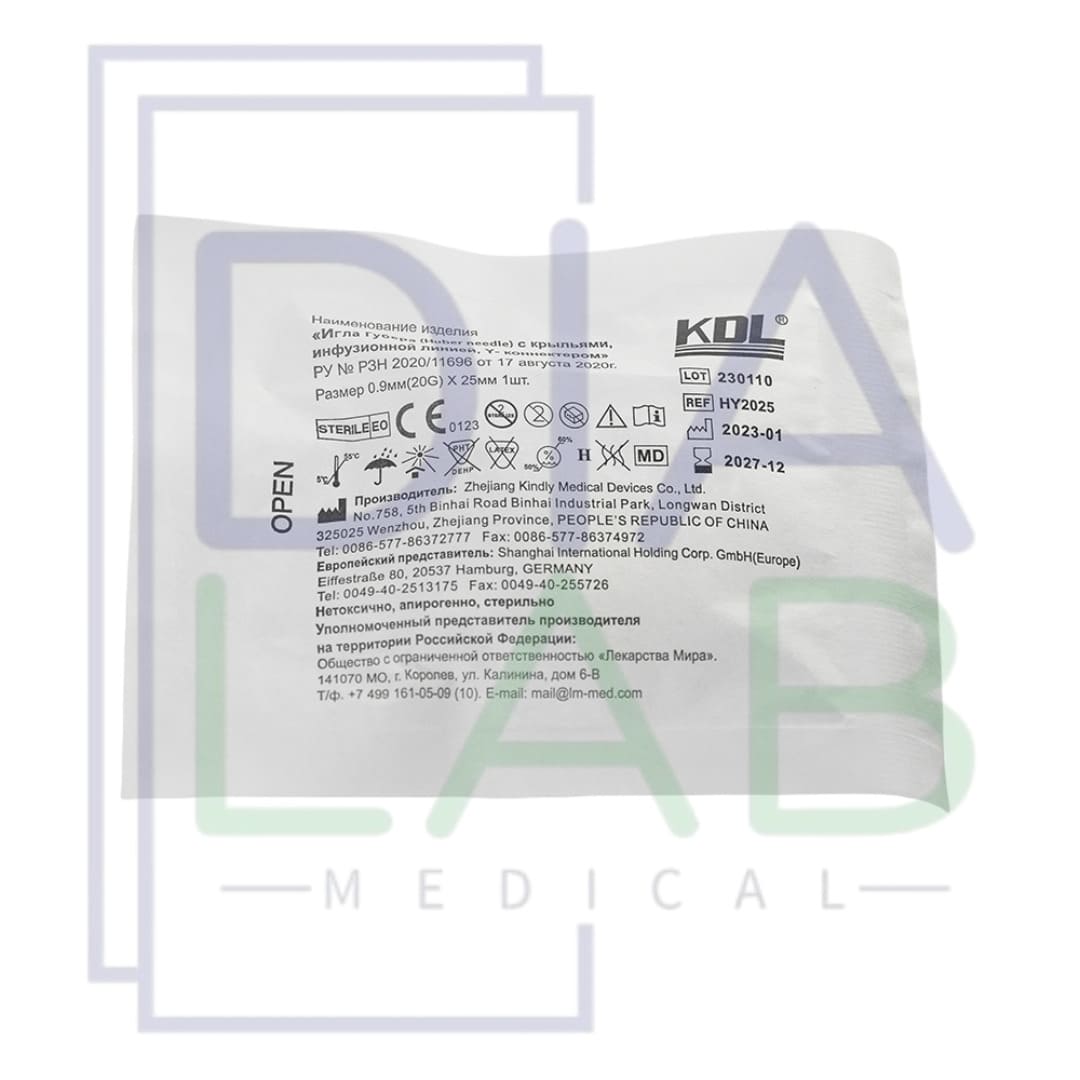 Иглы Губера одноразовые стерильные с крыльями, инфузионной линией и Y-коннектором с силиконовым клапаном от производителя KDL (Китай).