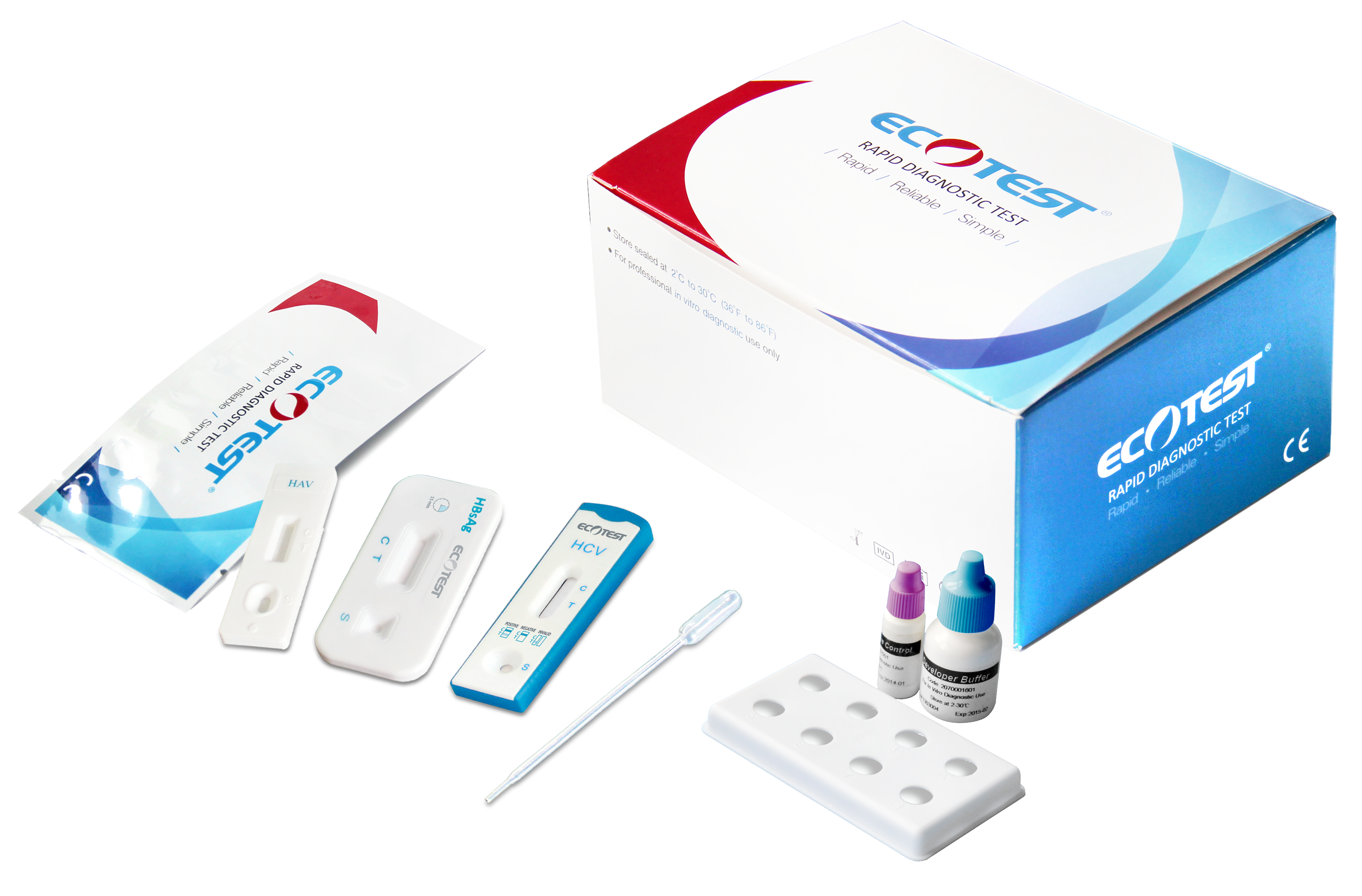 Экспресс-тест Ecotest для определения антигенов COVID-19 и гриппа А/В в образце мазка человека, (носоглотка/ротоглотка) методом ИХА анализа вне зависимости от формы и срока заболевания.